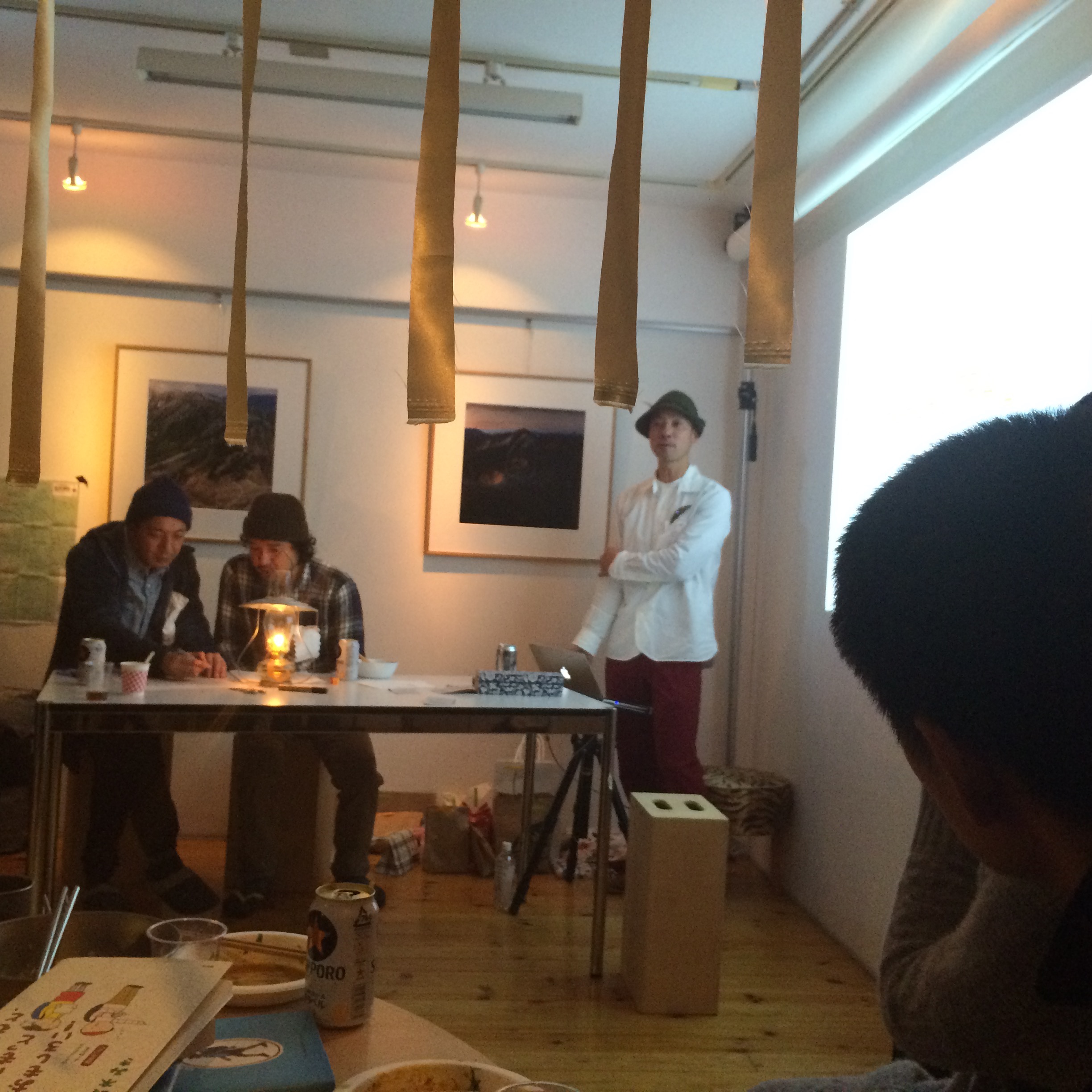 石川博己さん、事務所スペースで開かれたHappy Hikersクリスマスパーティー。山を愛する全てのハイカーの為のコミュニティ”Happy Hikers”〜に山登りもしない人間が参加しました。